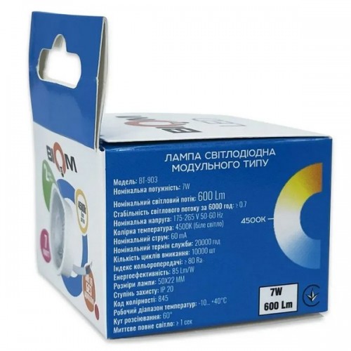 Світлодіодна лампа Biom BT-903 7W MR16 модуль 4500K лінза є практичним рішенням для заміни застарілих джерел світла.
